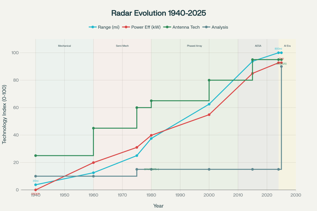 Radar technologists often note a curious fact: during eight decades of radar history, the hardware evolved at breathtaking speed while the fundamental method of analyzing data barely changed. Each generation of radars represented enormous engineering achievements. The jump from mechanical antenna scanning to phased array technology happened in the 1950s. Operators no longer waited for the antenna to rotate. Beams could redirect electronically in microseconds. Detection ranges doubled then doubled again. Resolution improved from detecting general formations to identifying specific vessels.